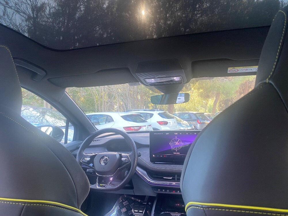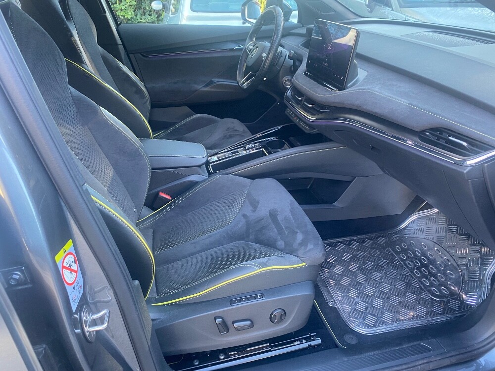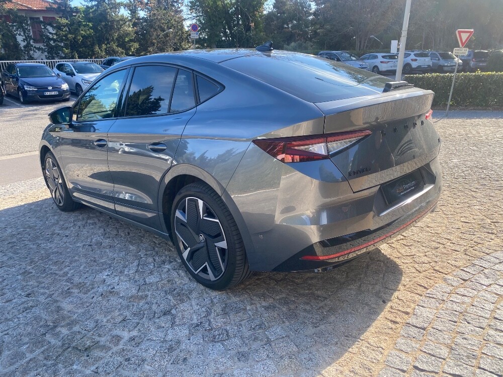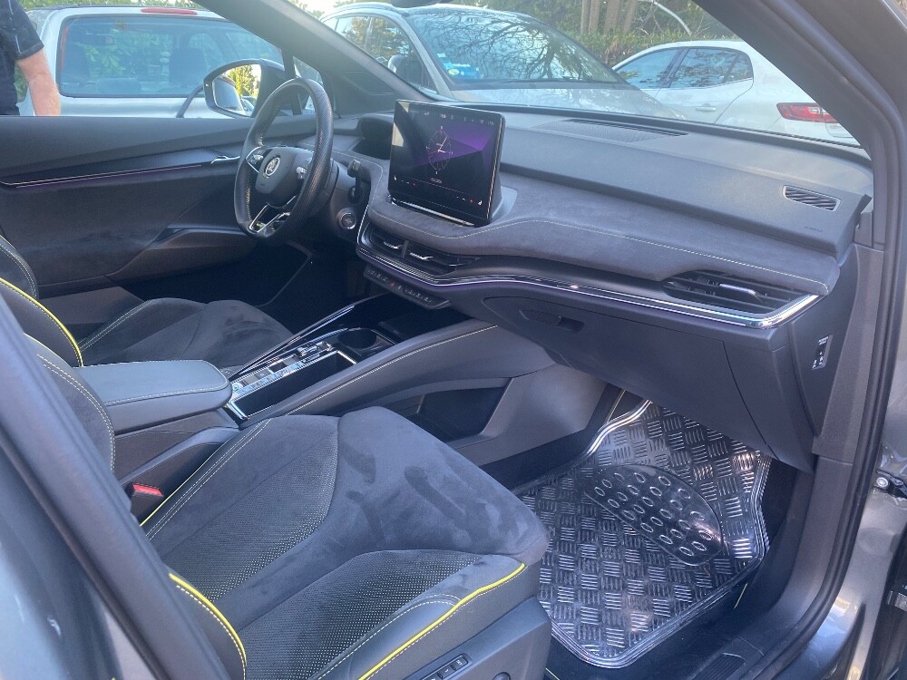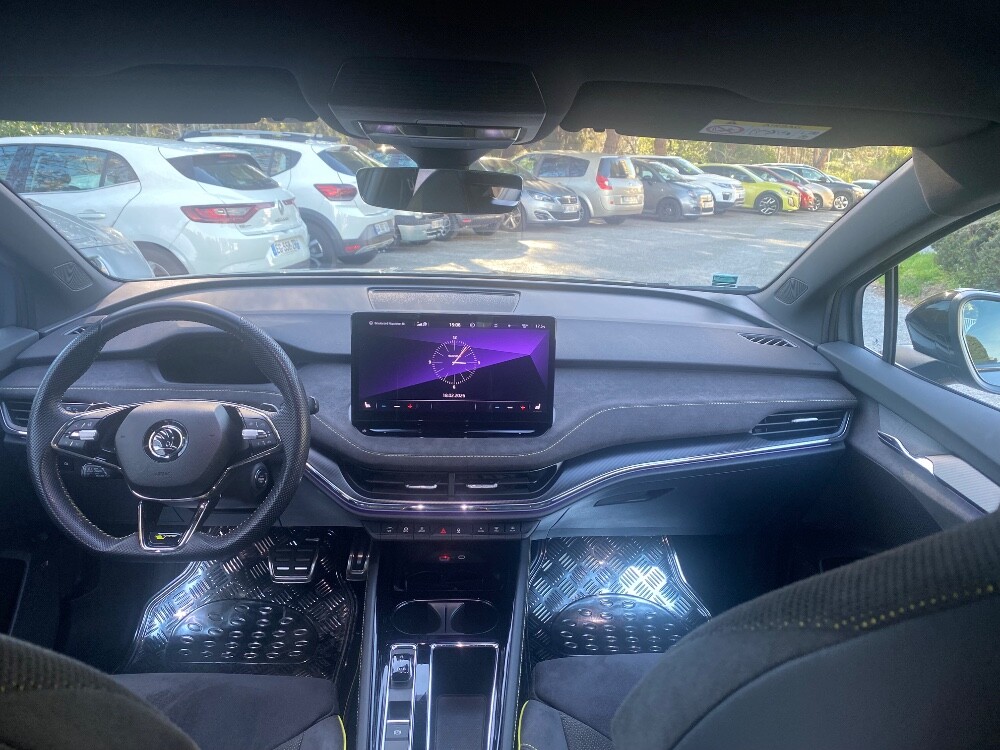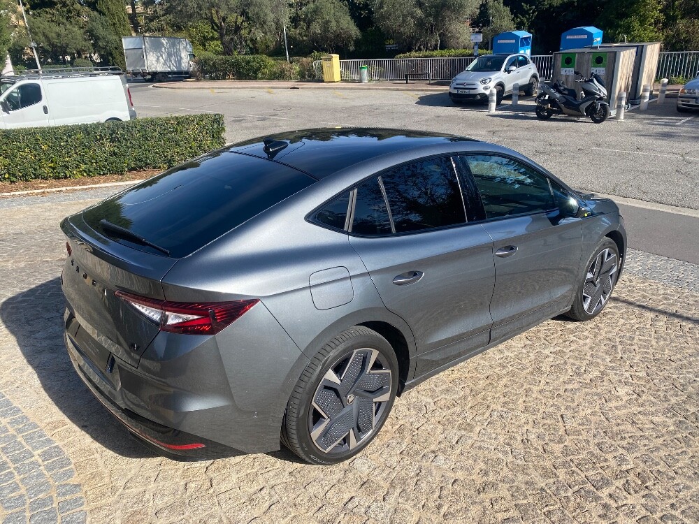 L’Agence Auto Premium vous Propose ce magnifique ENYAQ Coupé iV RS, version la plus sportive et aboutie de la gamme, combinant performance, technologie et confort premium. Mise en circulation le 05 septembre 2023, affichant seulement 13 219 km, le véhicule est dans un état irréprochable. Performance & Technologie * 299 ch – Transmission intégrale intelligente (4x4) * Batterie 82 kWh * Autonomie jusqu’à 500 km (WLTP) * 0 à 100 km/h en 6,5 secondes * Recharge rapide DC jusqu’à 135 kW * Conduite silencieuse, souple et extrêmement dynamique Finition RS – Configuration Premium * Intérieur RS sport avec sellerie suédine/cuir et surpiqûres vertes * Sièges chauffants * Volant sport chauffant * Écran central 13’’ + cockpit digital * Matrix LED * Caméra de recul + radars AV/AR * Régulateur adaptatif (ACC) * Aides à la conduite complètes * Hayon électrique * Jantes alliage RS * Toit panoramique * Apple CarPlay / Android Auto État & Garanties * Véhicule très récent (09/2023) * Faible kilométrage : 13 219 km * Garantie constructeur en cours * Batterie garantie 8 ans / 160 000 km * Aucun frais à prévoir * Non fumeur * Double des clés SUV coupé au design affirmé, prestations premium, performances sportives et coût d’usage maîtrisé. Un excellent compromis entre dynamisme et confort familial. Visible sur rendez vous a Nice Dossier photo complet sur demande